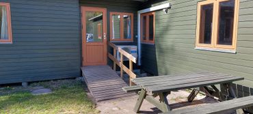 Udendørs er der en god boldbane, bålplads, skoven og stranden